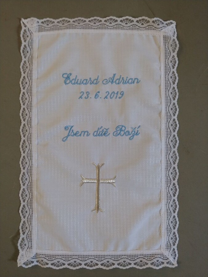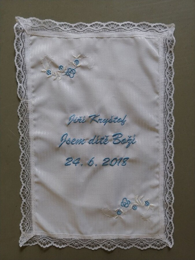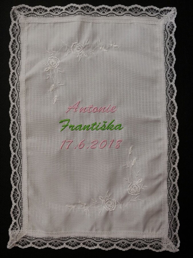 Provádíme výšivky a nášivky na textil.Chcete výšivku na svatební bryndák nebo dokonce křestní roušku? My si poradíme se vším!