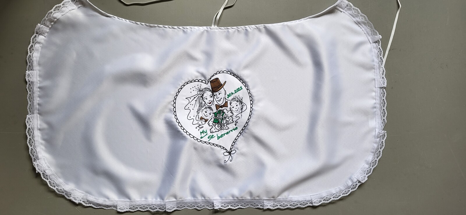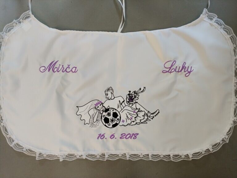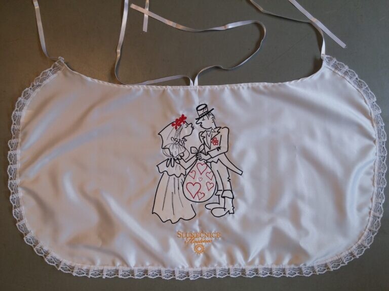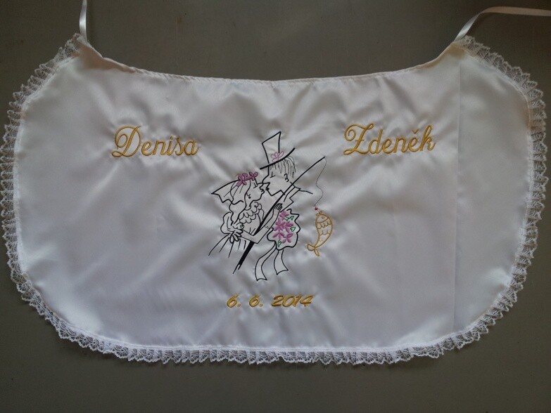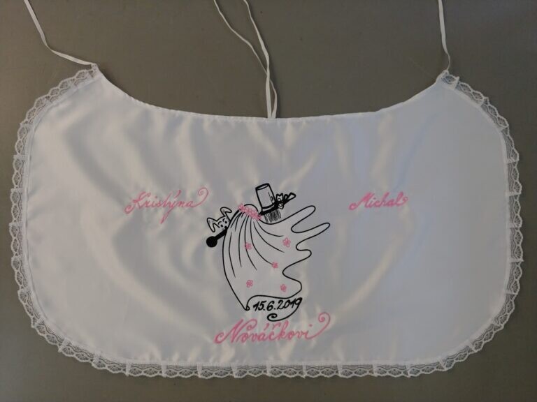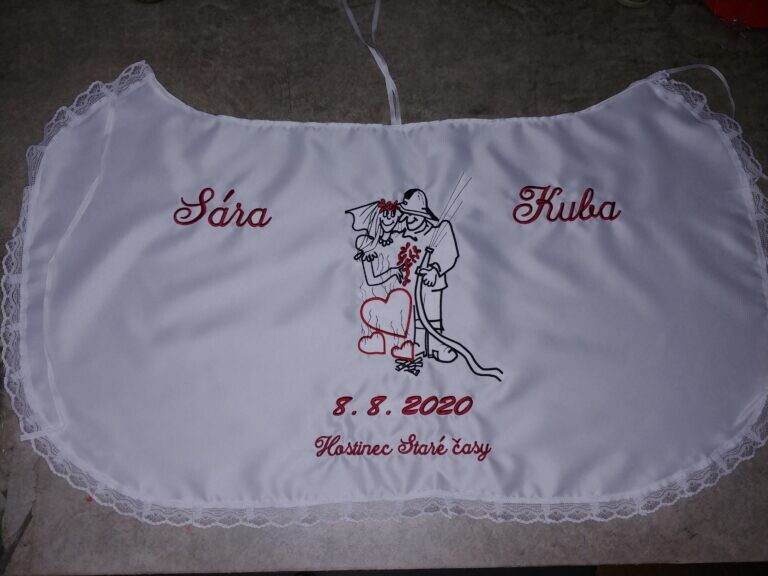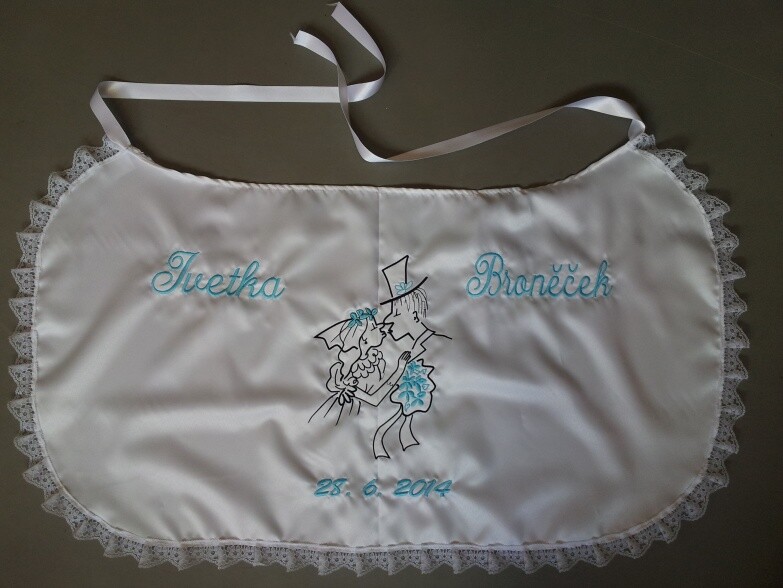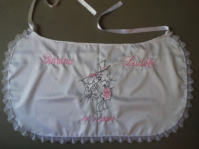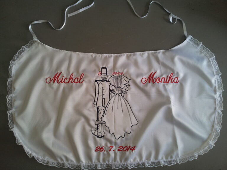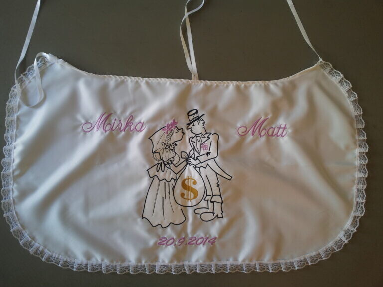 Využijte naší nabídky Svatbadekoru, vyrobíme vám novomanželský bryndák s originálním textem a výšivkou v různých barevných provedeních. Personalizovaný svatební bryndák vám po svatbě zůstane jako překrásná památka na slavnostní den.